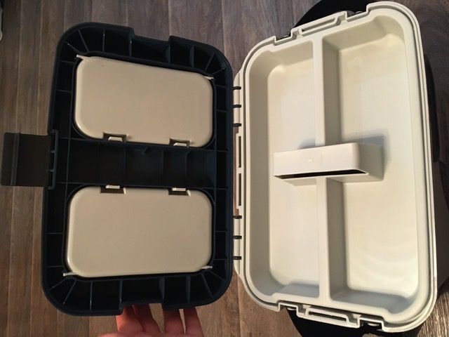 Заказала мужу подарок на Новый год, муж в восторге, ящик из плотной пластмассы, легкий, объемный, резиновые кармашки просто супер, съемные с удобной фиксацией. Порадовал ремень, который можно фиксировать в двух положениях (как рюкзак и через плечо). Всем рекомендуем. Спасибо за качество.